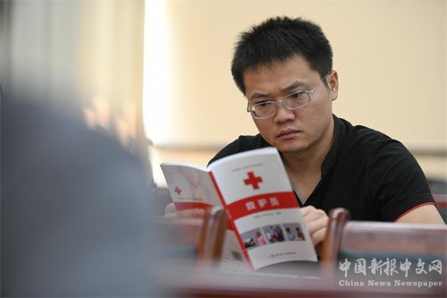 2023年8月31日,贵州省凯里市红十字会开展应急救护技能集训,学员在看书学习。(杨仁海 摄)