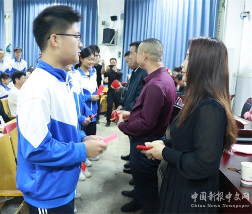江门市衡阳商会秘书长王继碧寄语受资助的优秀贫困学子,勉励他们志存高远、惜时奋进、自强不息、迎难而上,用优异的成绩报效祖国、反哺家乡、回馈社会。