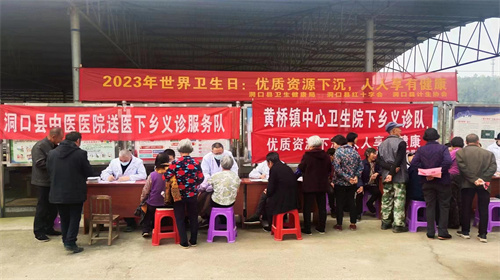 为进一步推进创建全国文明城市工作走深走实。4月7日“世界卫生日”当天,由洞口县卫生健康局、县红十字会、县计生协会组织的志愿服务队,深入黄桥镇潮水村开展以“优质资源下沉,人人享有健康”为主题的“世界卫生日”大型义诊志愿服务活动。