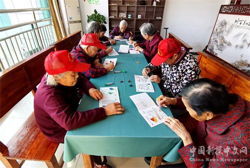 2023年10月20日,生活在安徽省合肥市庐江县怡和园老年公寓的老人们,在指导老师的带领下,进行体能锻炼、学习绘画创作。