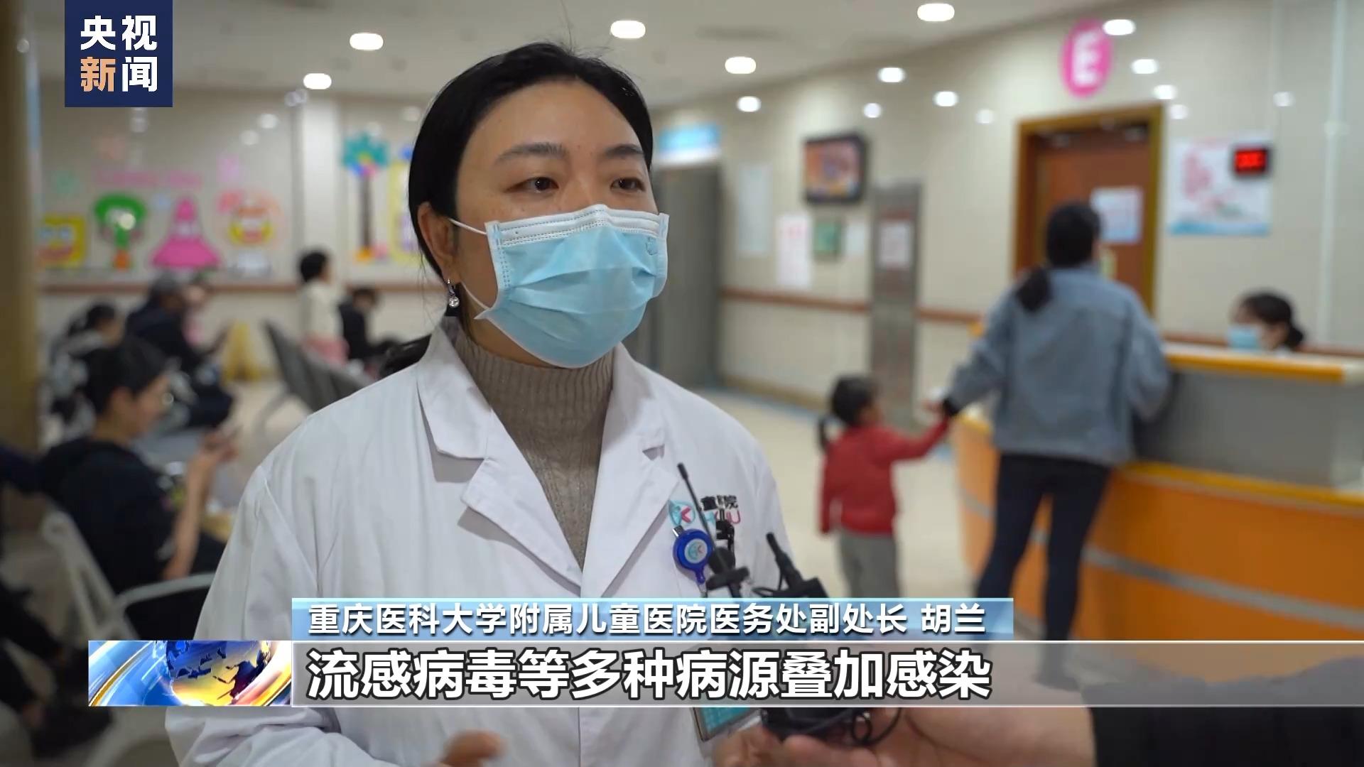 重庆医科大学附属儿童医院医务处副处长 胡兰:目前正处于我们儿科秋冬季呼吸道感染高发期,有肺炎支原体、流感病毒等多种病源叠加感染,现在我院呼吸道感染占比大概占全部门诊量40%左右。