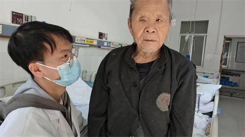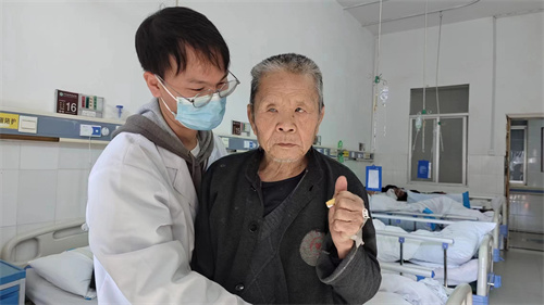 2023年11月15日中午,孤寡老人唐大爷突然晕倒,意识不清,村民呼叫120送到了宁远县中医医院急诊科。患者入院时,神志模糊,检查不合作,失语不利,右侧肢体不能活动。急诊科医生考虑急性脑梗死立即请脑病科医生会诊,开启卒中绿色通道,即行头颅CT扫描后,收治于脑病科。