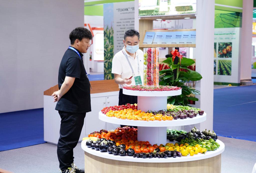 2023中国种子大会暨南繁硅谷论坛在海南三亚举行。4月1日,与会者在参观论坛展览。新华社记者 樊雨晴 摄