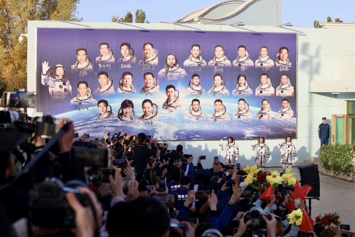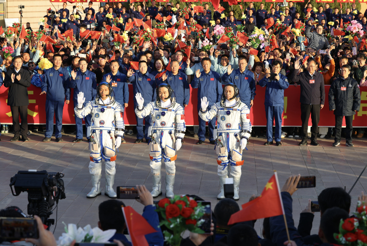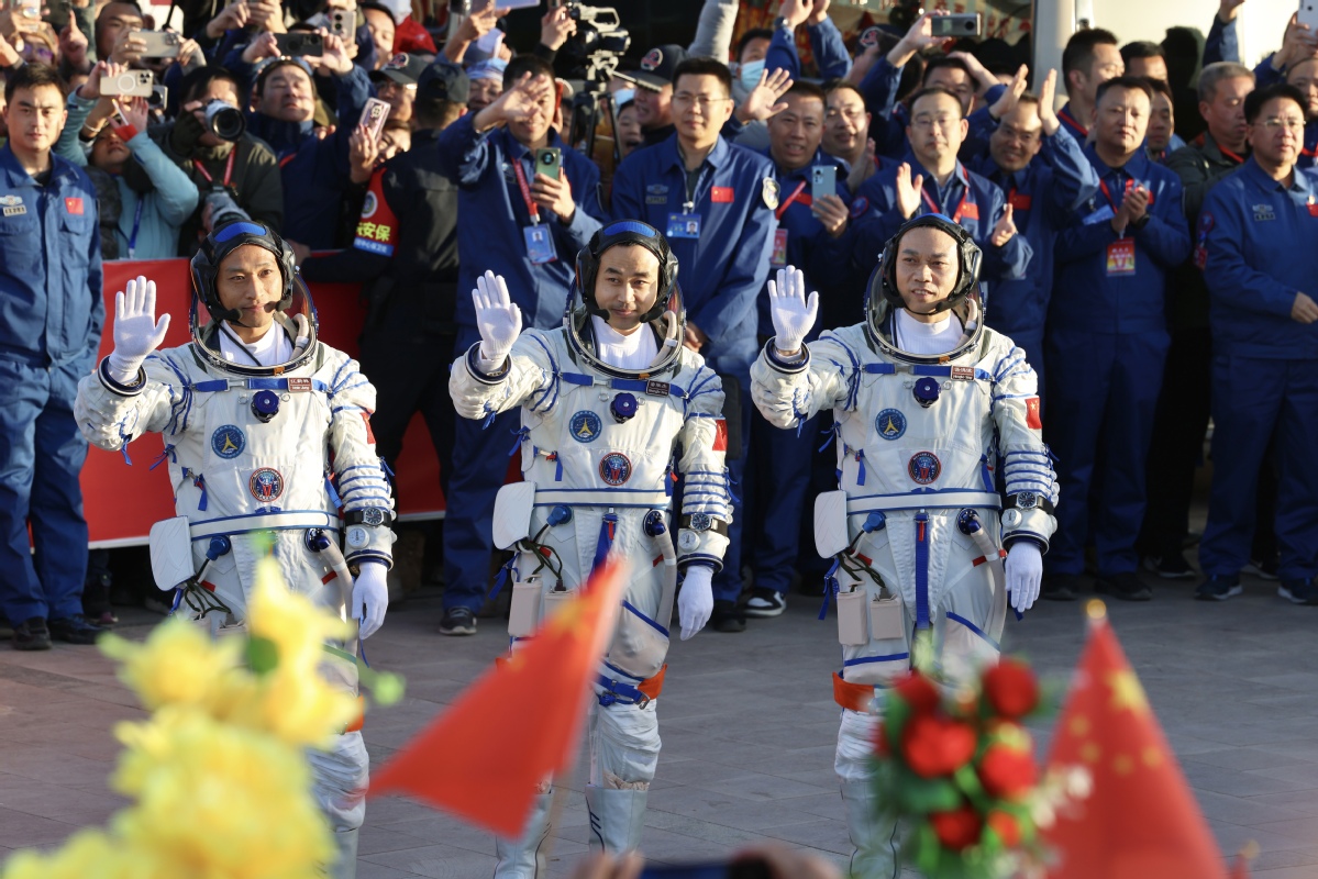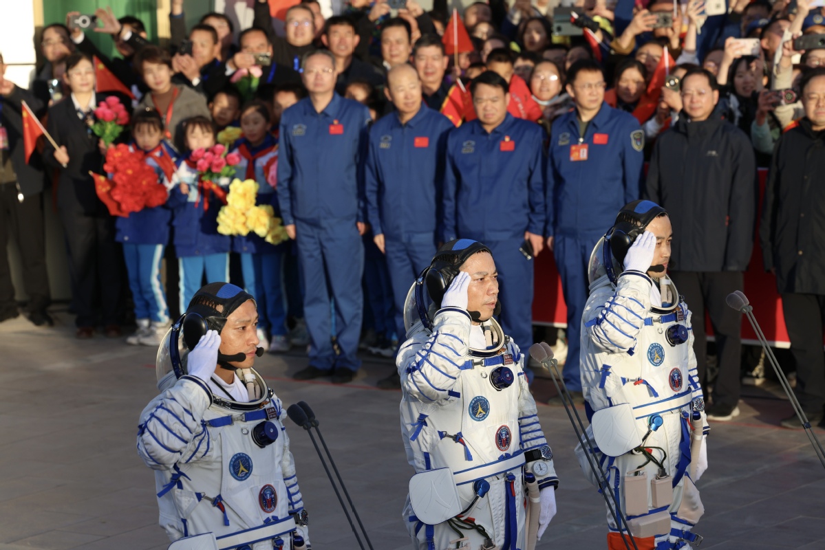 中国日报酒泉10月26日电(记者 朱兴鑫)2023年10月26日上午,神舟十七号载人飞行任务航天员乘组出征仪式在酒泉卫星发射中心问天阁圆梦园广场举行。