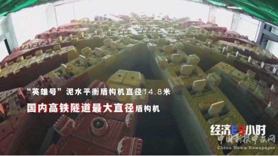 正在昌九高铁天祥大道隧道掘进的“英雄号”泥水平衡盾构机直径达到14.8米,是国内高铁隧道最大直径盾构机。