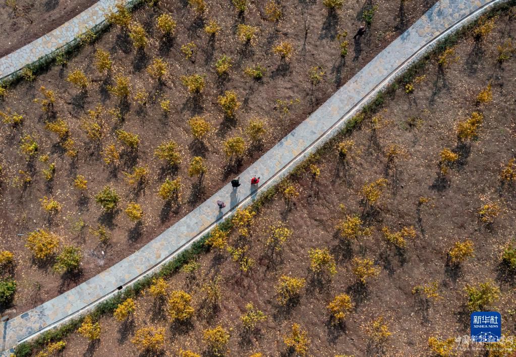 1月7日,在重庆市北碚区静观镇腊梅博览园,游客在赏花游览(无人机照片)。