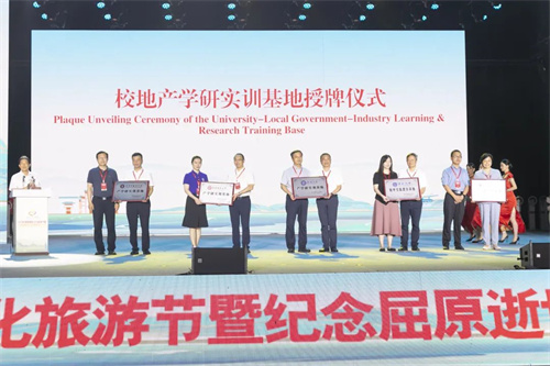 现场,还举行了校地产学研实训基地授牌仪式。同济大学、中南大学等全国35所高校与汨罗市人民政府达成共识,合作共建产学研基地,助推文旅教深度融合,以科研智库支持文旅融合发展。