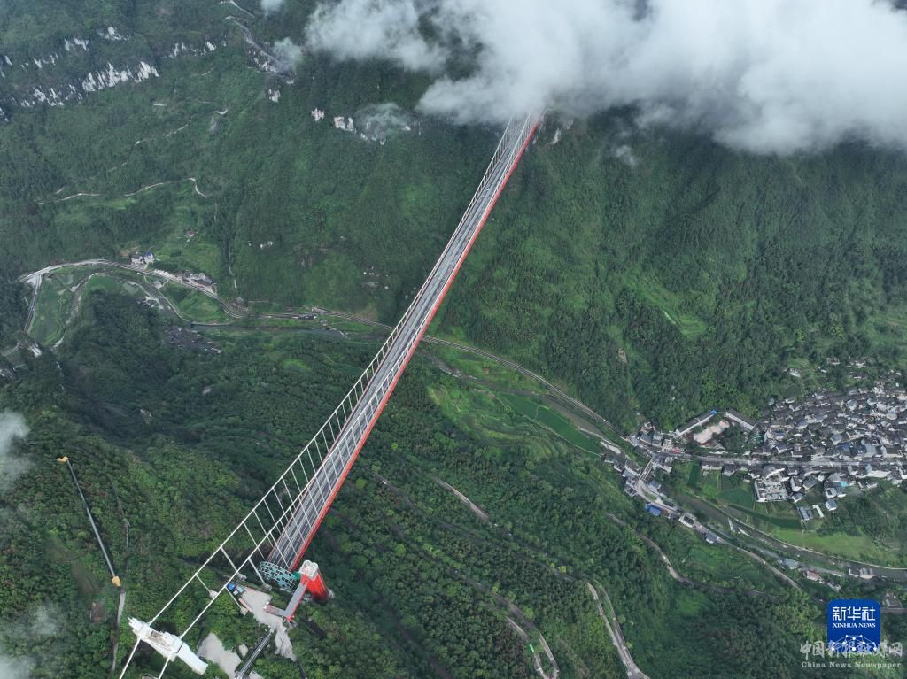 7月8日拍摄的矮寨特大悬索桥(无人机照片)。