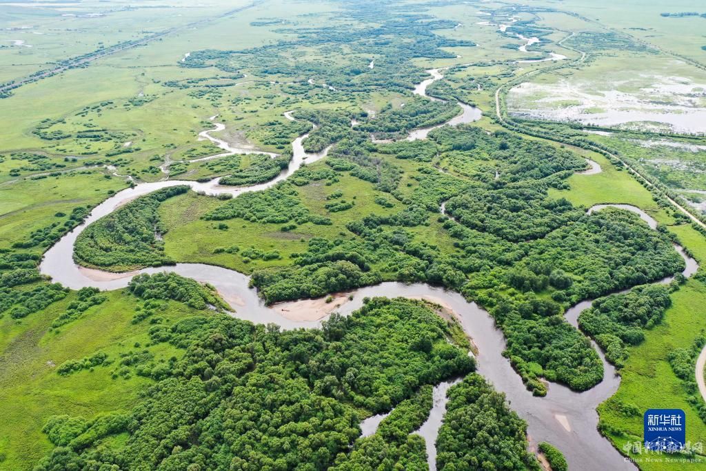 夏日时节,位于内蒙古自治区呼伦贝尔市牙克石市的免渡河国家湿地公园郁郁葱葱,景色优美。