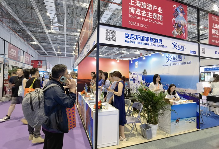 突尼斯国家旅游局组织的展台亮相第二届上海旅游产业博览会现场(5月29日摄)。新华社记者 陈爱平 摄
