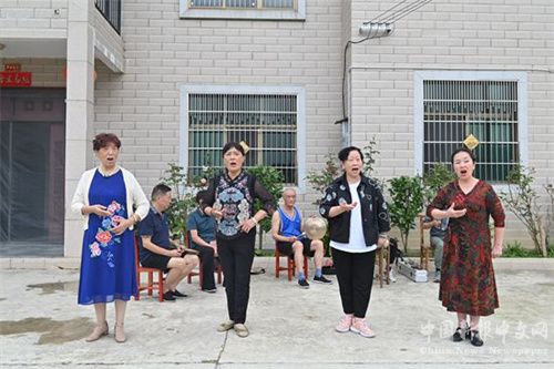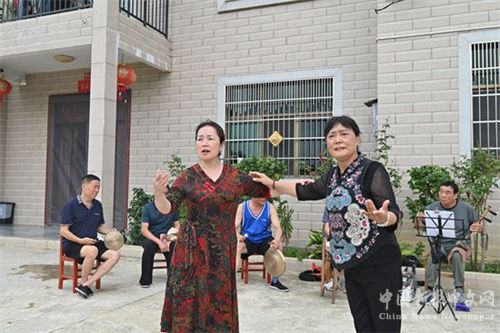 8月14日,湖南省怀化京剧协会游客在隆回县麻塘山乡民宿避暑自娱自乐表演京剧。近二年来,该乡利用高山气候和生态资源优势,发展民宿86家,吸引周边市县游客前来避暑休闲。(贺上升摄)