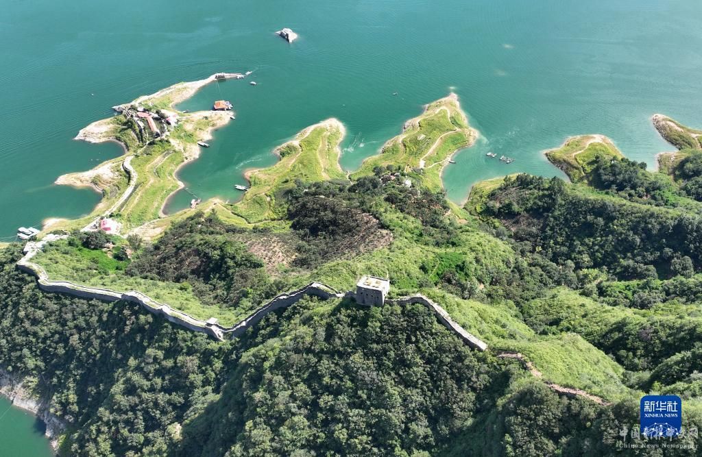 河北唐山迁西县“水下长城”风光(8月30日摄,无人机照片)。