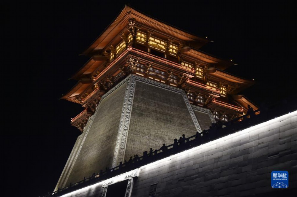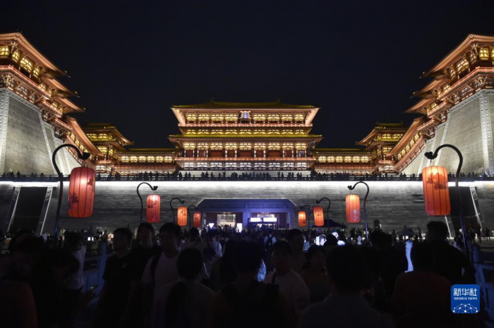 夏夜时分,河南省洛阳市隋唐洛阳城国家遗址公园应天门遗址博物馆灯火辉煌,热闹非凡,满目的人间烟火再现千年古都繁华盛景。
