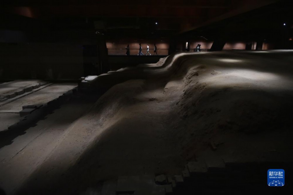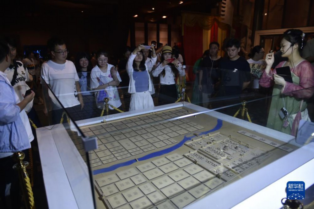 8月11日晚,游人在洛阳应天门遗址博物馆内参观。