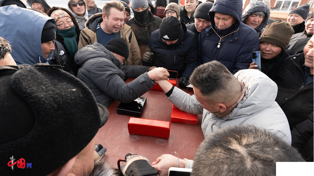 村广场上正在进行冬宰节扳手腕大赛。