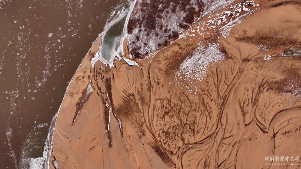 这是12月24日在黄河宁夏段拍摄的流凌景观(无人机照片)。