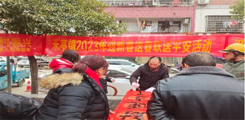 “行鸿运年年兴旺,迎百福岁岁平安”……在湖南宁远禾亭镇集市金叶广场,书法家们挥毫泼墨,一副副充满新春祝福和希望的春联跃然纸上,现场群众陶醉在春联营造的美好意境中,大家赞不绝口、争相领取,并对政府表示深深谢意。在领取春联的同时,镇政府工作人员也为群众送上了美好的新年祝福和最新的政策宣传大礼包,通过大礼包群众可以了解到反电信诈骗法治、禁毒、远离非法集资信息、技能培训信息、自主创业贷款信息等。