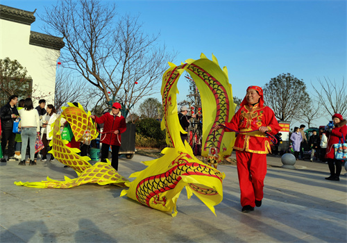 岱鳌山主峰所在地的乐桥镇举办丰富多彩的民俗活动,吸引了不少村民、游客饶有兴致地前来参与,在游览岱鳌山的同时,感受热闹喜庆的新春气息,体味浓浓的皖中风俗年味。(巢志斌 摄影报道)