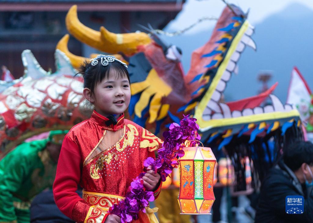 当日,浙江省杭州市淳安县里商乡举行2023元宵节花灯巡游,为当地山乡增添了热闹的元宵氛围。