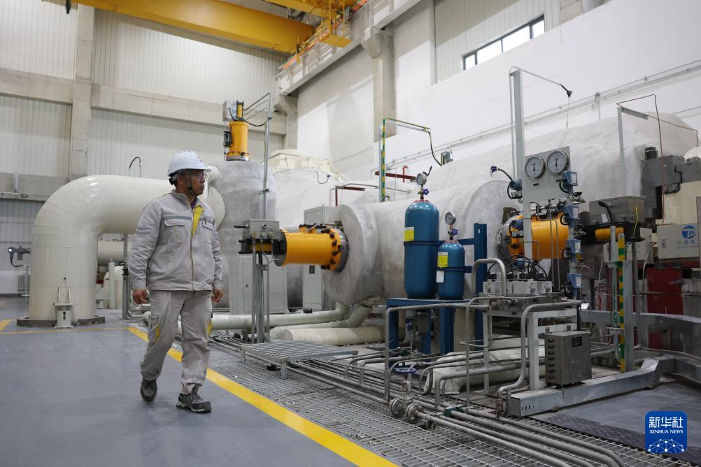 11月30日,工作人员在阿克塞汇东新能源光热+光伏试点项目机房内查看设备运行情况。