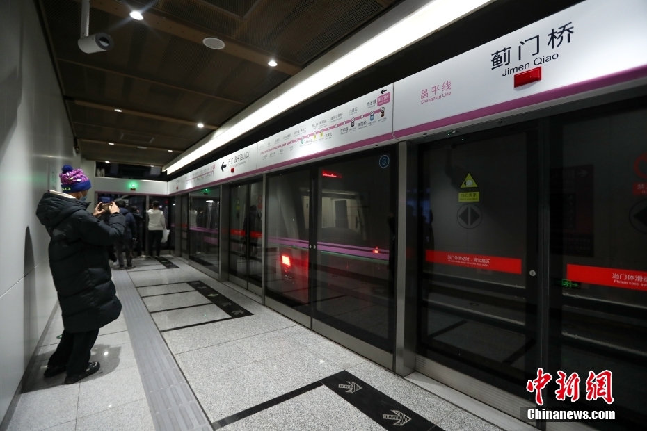 5时21分,昌平线的蓟门桥站首发列车从站台开出。