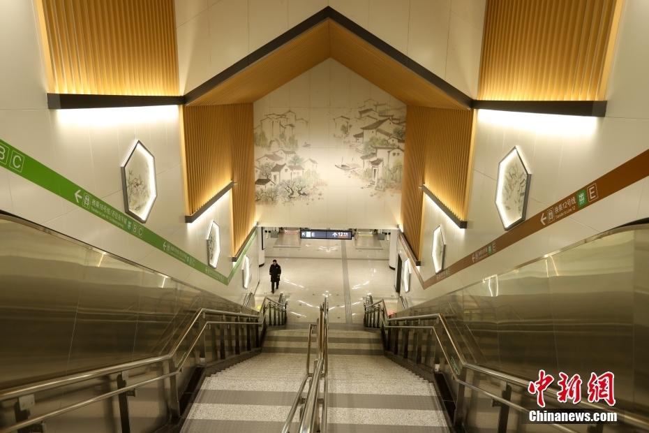12号线首班车乘客拍照打卡四季青桥站。