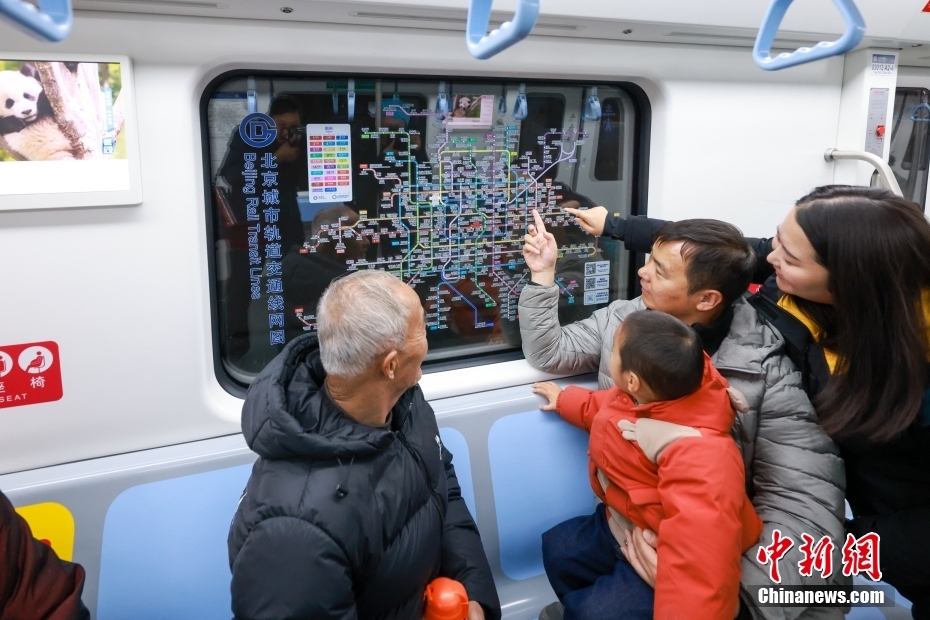乘客在北京地铁3号线列车内查看最新的线路图。