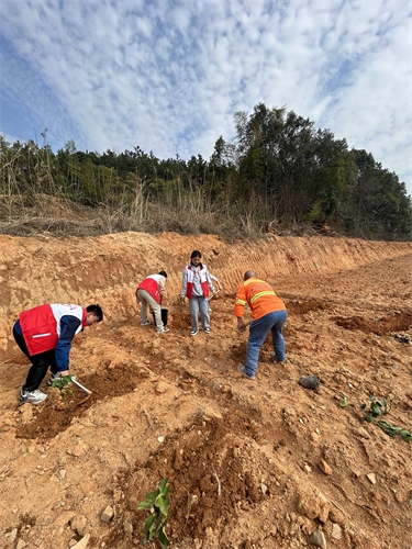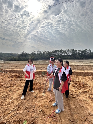 下午两点,同学们在“湖南好人”刘金文和资深“优秀义工”王海林带领指导下手持铁锹、锄头和水桶等工具,热情洋溢地投入到植树工作中。他们分工协作,有的负责挖坑,有的负责栽树,有的则忙于浇水。每一棵果树苗都被精心栽种,每一片绿叶都映衬着志愿者们的笑脸。通过这次活动,不仅帮残疾公益人刘露栽种了果树,也让同学们体会到了亲手种下收获与希望的快乐。