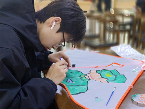 现场气氛热烈而有序,志愿者们互相交流着对雷锋精神的理解,不断激发灵感,最后将自己对雷锋精神的理解和感悟以图画的方式呈现在风筝上。不少同学还在风筝上书写了激励人心的格言警句,期望放飞之时,不仅鼓励自己,更能启迪他人向善向上。