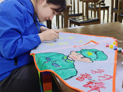 活动当天,在阳光明媚的操场上,来自各学院的百余名大学生志愿者们手握画笔,将各自的爱心与创意倾注在一只只空白风筝上。他们以“学习雷锋好榜样”为主题,创作出一幅幅富有深意且色彩斑斓的作品,既有展现雷锋事迹、歌颂无私奉献精神的画面,也有描绘美好生活愿景和和谐社会景象的设计。