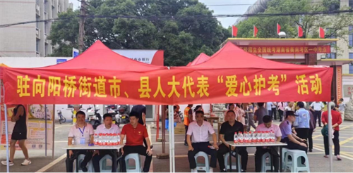 为给广大考生创造良好的考试环境,街道人大代表联络站充分发挥"人大代表网格化联系服务群众"工作机制作用,通过微信网格群、朋友圈等线上渠道向广大群众发出倡议:在高考期间不制造噪声污染,绿色出行,减轻交通压力,给考生让出一条考试绿色通道。同时,驻向阳桥街道市、县人大代表们还下沉一线,在考试期间到交通要塞口进行交通劝导、对衡南一中考点附近建筑施工进行安全巡查并进行停工劝导。