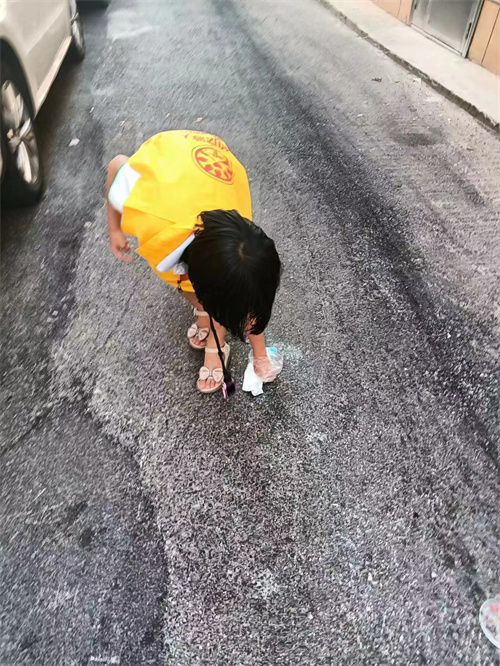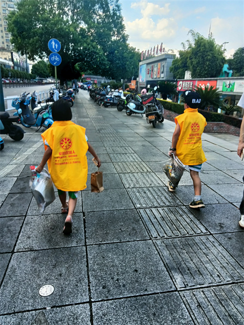 尽管室外骄阳似火,但是丝毫影响不了十几名小义工的热情,孩子们争先恐后的捡拾烟头、饮料瓶、废纸屑等垃圾,忙得不亦乐乎,满头汗水。最认真的是陆梓荣和陆心妤两兄妹,拾到满满一袋子才露出灿烂的笑容。她们每年暑假都来参加捡拾垃圾的活动,家长表示:“从小培养他们的社会责任感,提升他们吃苦耐劳的品质,也是成长的课堂,我们一直会坚持。”