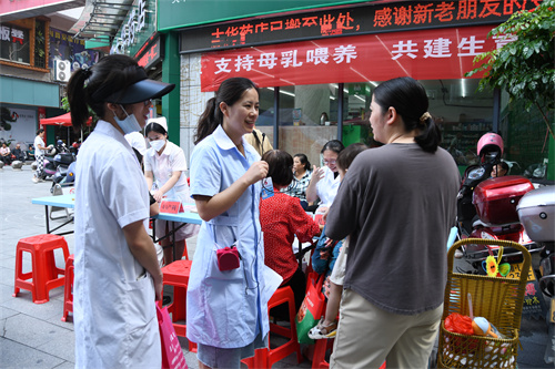 活动一开始,该院产科护士长就通过向现场观众提问的方式,加强群众对母乳喂养知识的了解,免费发放小礼品的形式增加了与现场观众的互动氛围,极大提高群众深入学习母乳喂养相关科普知识的积极性。路过的群众,特别是带宝宝的妈妈和奶奶们纷纷积极抢答,部分宝妈对母乳的好处、重要性回答得头头是道;该院健康教育科工作人员向到场的群众介绍了母乳喂养的重要性,并现场教授新手妈妈如何通过科学手法进行挤奶。该院医护人员顶着炎炎烈日耐心讲解了母乳喂养中出现的问题如何解决,职场妈妈怎么哺乳,特殊孕妈如乙肝阳性能否哺乳,母乳喂养中的注意事项等,强化科学喂养,解决妈妈们的后顾之忧,让全社会共同支持母乳喂养。