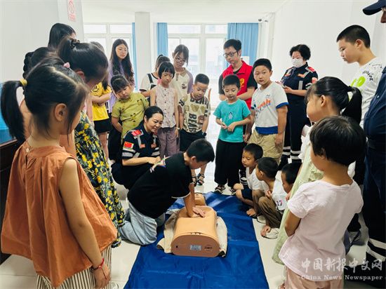 “暑期安全是重中之重,因为危险就在我们旁边,防溺水教育刻不容缓,小朋友们一定要重视。”课堂上,老兵救援队的志愿者用图文并茂的PPT课件,从防溺水措施、发生溺水时如何自救等方面详细地为孩子们讲解防溺水知识,并带领大家一起学习防溺水儿歌。活动现场,志愿者还通过道具,向孩子们演示如何给溺水人员做心肺复苏抢救,手把手作培训指导,孩子们积极参与,现场气氛热烈。