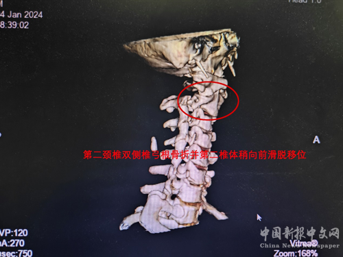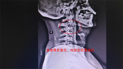 主治医师张冉解释,第二颈椎骨折即枢椎椎弓骨折,以往多见于中世纪被绞刑者,也就是俗称的“绞刑骨折”。因为颈椎后方有掌控呼吸心跳的生命中枢神经,损伤后会直接导致患者死亡,所以在该处手术的难度和风险较大,对手术精度要求极高。