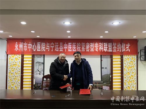 中国新报讯(通讯员 欧阳丽娟)为深入贯彻落实国家分级诊疗政策,推动深化医改,促进优质医疗资源下沉,切实缓解老百姓“看病难、看病贵”的问题,2月29日下午,永州市中心医院与宁远县中医医院紧密型专科联盟签约仪式在宁远县中医医院举行。市中心医院副院长桂成佳,市中心医院相关科室负责人及医疗专家、宁远县中医医院班子成员、党委委员及相关部门负责人及临床科室科主任参加签约仪式。