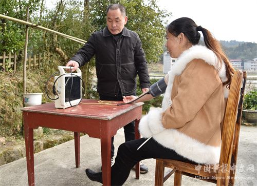 3月9日,隆回县金石桥镇五罗村乡村医生在农家小院免费为村民量血压。近年来,该镇将乡村医生的职能由坐诊看病拓展到走村防病。乡医走村入户为村民免费量血压、测血糖,进行常见病、慢性病防控的同时,还为高危人群实施家庭健康管理定向服务,为村民健康保驾护航。(通讯员 陈甫春 摄影报道)