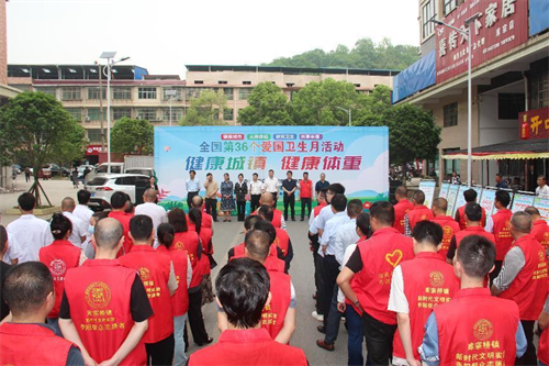 中国新报讯(曾昱 李小华)4月16日上午,衡阳县爱卫办组织县卫健局、库宗桥镇党委政府、库宗桥镇卫生院、县爱卫事务中心等单位在库宗桥镇集镇南雅路开展以“健康城镇健康体重”为主题的衡阳县第36个爱国卫生月进库宗桥活动。衡阳县爱卫办副主任、县卫健局副局长傅同生,县爱卫中心主任邬高平,县爱卫中心书记王建光,镇党委书记洪桥,镇党委副书记、镇长柏灿璨等领导出席活动并发表致辞。