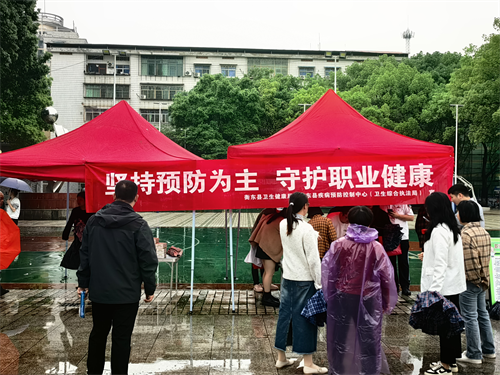 在宣传周期间,衡东县卫健局及县疾病预防控制中心(县卫生综合监督执法局)在文体广场通过设置宣传台、摆放展板,同步开展职业病防治知识健康咨询,发放宣传资料和宣传品,向群众、企业职工普及常见的职业病危害因素、职业健康体检、职业病诊断鉴定、职业心理健康以及尘肺病救治救助等相关知识。同时还组织了卫生监督执法人员及疾控中心职业病防治科的工作人员共同进入湖南氟化学有限公司、湖南燕翔湘实业有限公司、红狮水泥等企业开展《职业病防治法》的知识宣传。宣传活动的现场共接受群众、企业工人咨询职业病相关知识500余人次,发放职业病防治宣传资料2000余份、宣传礼品500余件。