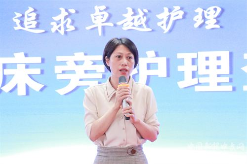 副院长吴国英在会上讲话,各参赛队伍的精彩表现不仅展示了医院护理团队的专业素养,更体现了医院对医疗质量和确保患者安全的不懈追求。如何在护理查房中创新,大家一直在思考,也一直在行动,希望各护理单元要将此次竞赛中所学所思运用到日常工作中去,常态化开展护理查房活动,不断优化护理管理,持续提升护理质量,为医院高质量发展贡献护理力量。