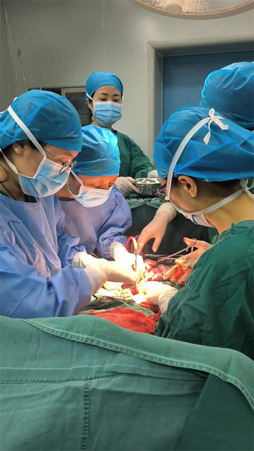 患者李某某,63岁,自2023年6月开始感腹胀不适,且自觉下腹部逐渐增大,遂来我科就诊,我院B超提示:盆腹腔混合回声包块,大小约198*152mm,门诊以“盆腔肿物性质待查”收住我科。在永州市中心医院南院帮扶专家蒋琴副主任医师的带领下,我院妇科团队经过充分的术前讨论、仔细的术前评估后,制定了详细严谨的手术计划,为患者成功实施了“全子宫切除+双侧附件切除+盆腔淋巴结清扫+腹主动脉旁淋巴结清扫+大网膜切除术”。术后,患者在医护人员的精心诊治下恢复良好,她向妇产科全体工作人员鼓掌以表达内心深深的谢意!