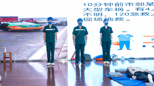 本次技能竞赛模拟大型交通事故现场紧急救援,包含检伤分类、多发性创伤急救、心肺复苏、电除颤及气管插管等五项技能操作,对参赛选手的操作规范、熟练程度、协作配合、应急反应等多方面进行综合评估。