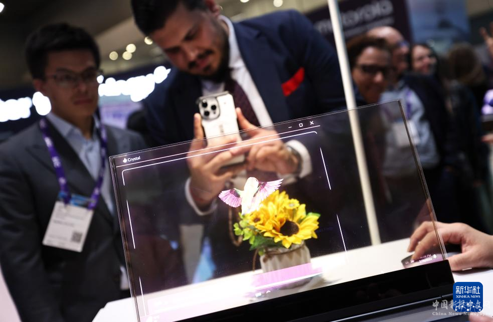 2月28日,在西班牙巴塞罗那举行的2024年世界移动通信大会上,参观者关注联想最新概念产品ThinkBook透明屏笔记本电脑。这款电脑借助人工智能技术将物理对象与数字信息相结合,创造出独特的用户内容,其透明性设计让设备能自然融入周围环境。