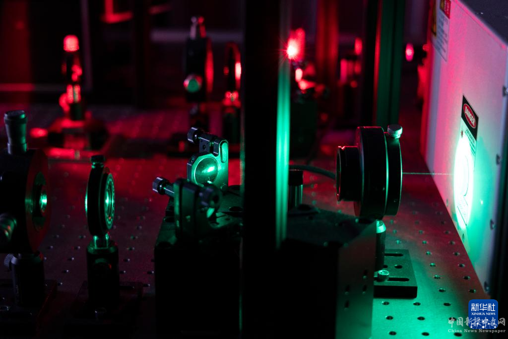 研究团队在上海光机所光学实验室,利用国际首创的双光束调控聚集诱导发光超分辨光存储技术做写入试验(2月29日摄)。