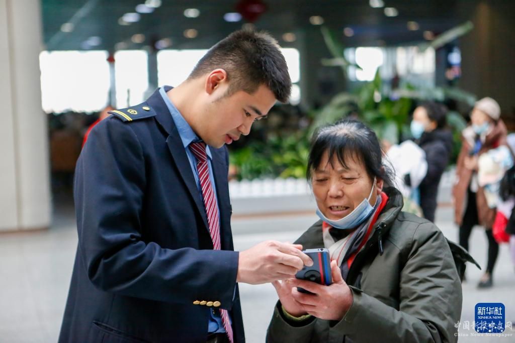 2月3日,在北京丰台站,旅客向工作人员咨询车次问题。