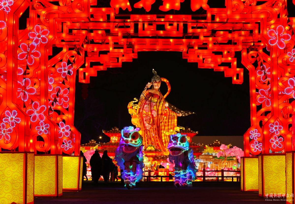 2月4日晚,游客欣赏花灯。中国日报记者 姜东 摄