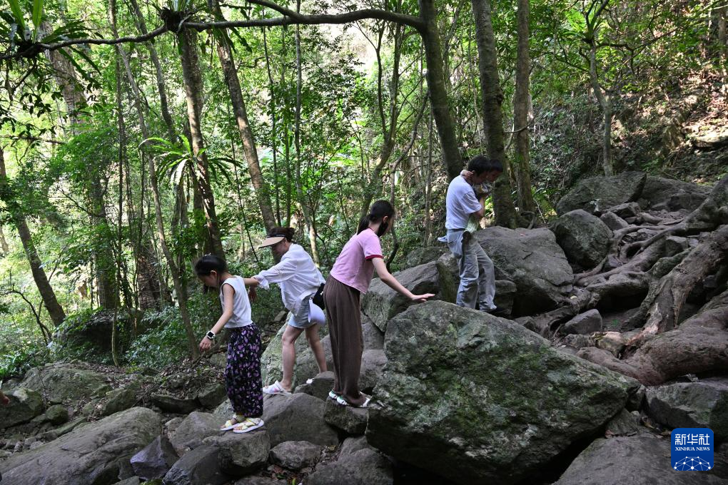 2月20日,游客在海南热带雨林国家公园五指山片区游玩。