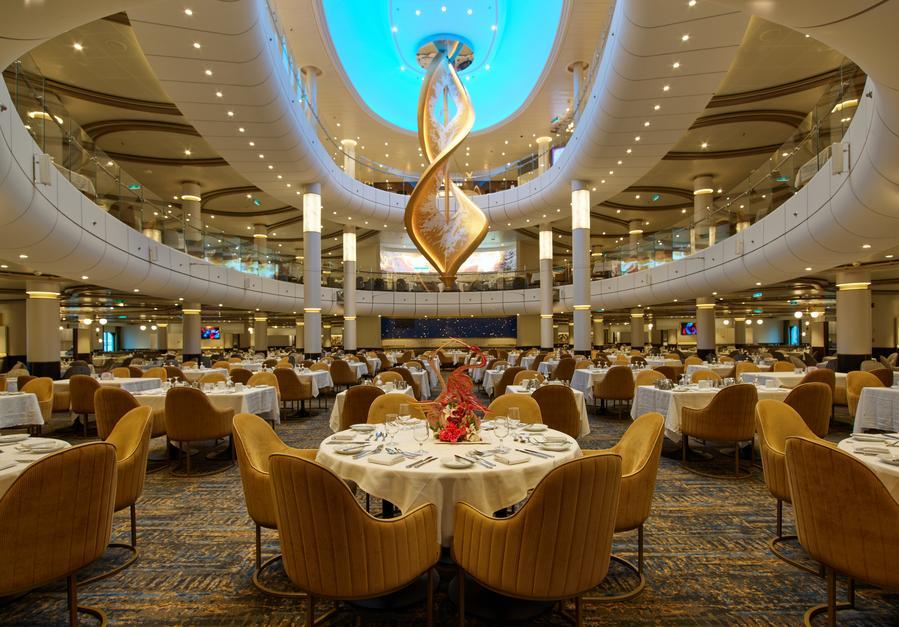 这是皇家加勒比“海洋光谱号”邮轮的主餐厅(资料照片)。新华社发(皇家加勒比供图)