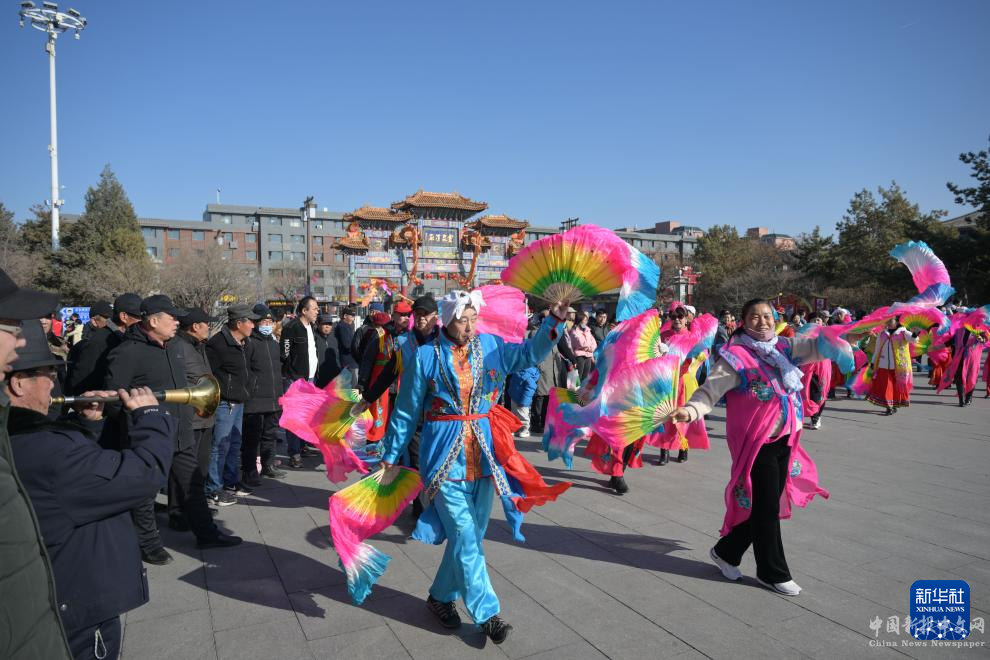 3月3日,市民在内蒙古呼和浩特市大召广场观看扭秧歌表演。