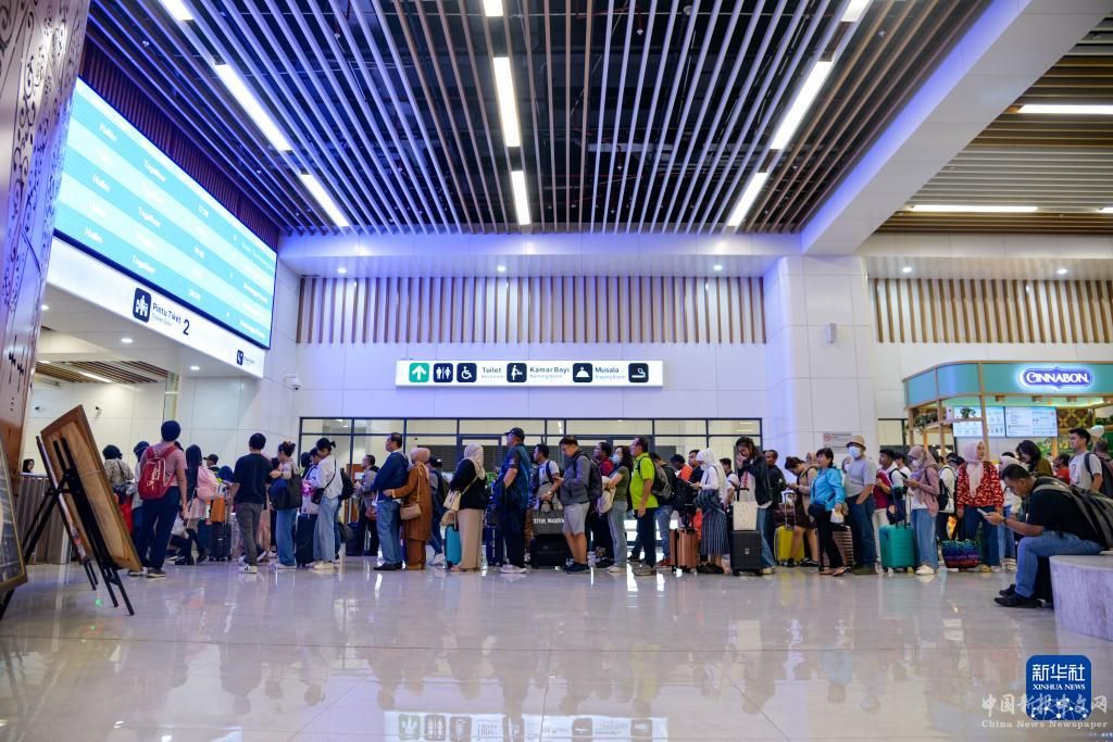 3月3日,在印度尼西亚雅加达哈利姆站,乘客排队刷票前往站台。 新华社记者 徐钦 摄